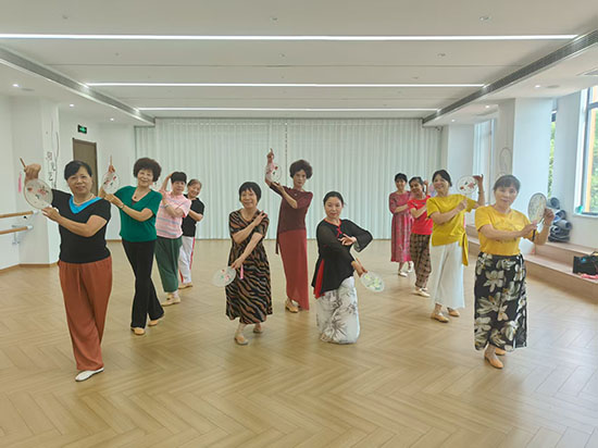 在黨群服務(wù)中心舞蹈教室里,老師正帶領(lǐng)學(xué)員們練習(xí)基礎(chǔ)身段。伴隨著悠揚的古典樂曲,老人們抬手、轉(zhuǎn)身、屈膝,動作雖不似年輕人那般靈動,卻透著一股認(rèn)真與執(zhí)著。“以前總覺得跳舞是年輕人的事,沒想到自己也能跟上節(jié)奏,跳完渾身都舒服!”