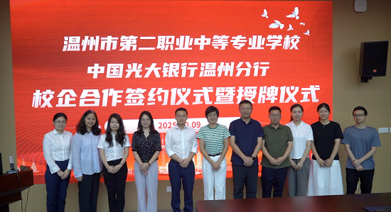 10月9日下午,秋高氣爽,碩果盈枝。溫州市第二職業(yè)中等專業(yè)學(xué)校與中國光大銀行溫州分行“銀校”金融服務(wù)合作簽約暨授牌儀式在東校區(qū)實(shí)訓(xùn)樓隆重舉行。雙方代表齊聚一堂,共同見證這一深化校企合作、共育金融人才的重要時(shí)刻。