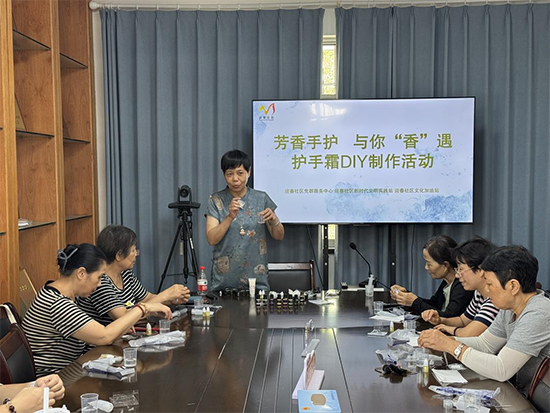“沒想到自己動手做護手霜這么有趣!”居民李女士一邊小心翼翼地調(diào)配原料比例,一邊與鄰座的鄰居交流心得。在孫老師的逐步指導(dǎo)下,大家紛紛變身“調(diào)香師”,根據(jù)個人喜好調(diào)配專屬配方。有的偏愛淡雅花香,有的鐘情清新果香,活動現(xiàn)場頓時成為創(chuàng)意的工坊。