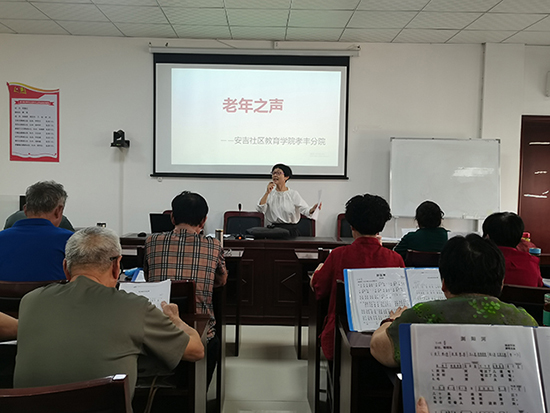 10月15日下午,安吉社區(qū)教育學(xué)院孝豐分院 “老年之聲”公益課堂走進三眼井社區(qū)文化禮堂,鄧念梅老師帶領(lǐng)40余名社區(qū)老年學(xué)員學(xué)唱經(jīng)典喜慶歌曲《好運來》,用歡快的旋律為老年人的晚年生活增添別樣色彩。