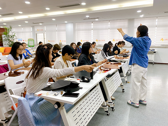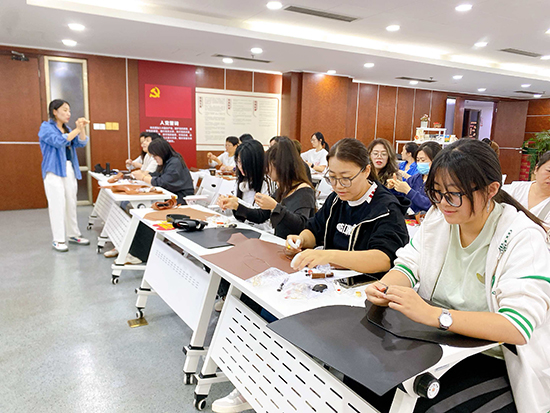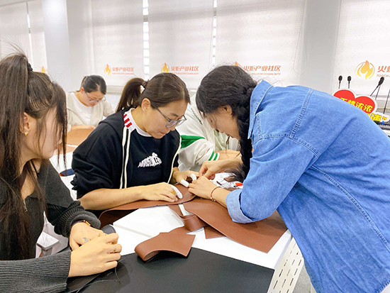 舒緩的輕音樂在現(xiàn)場流淌,大家圍坐在一起,時而專注地穿針引線,時而互相交流制作技巧,偶爾為彼此的創(chuàng)意設(shè)計點(diǎn)贊。平時在辦公室對著電腦久坐,這次親手做皮包,不僅鍛煉了動手能力,更感覺身心都放松下來了。
