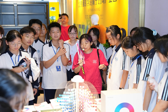活動(dòng)采用分組交替參觀的方式。A組學(xué)生依次參觀了產(chǎn)業(yè)園1—3樓展示區(qū)、中華紐扣博覽館;B組則按相反路線開展調(diào)研。