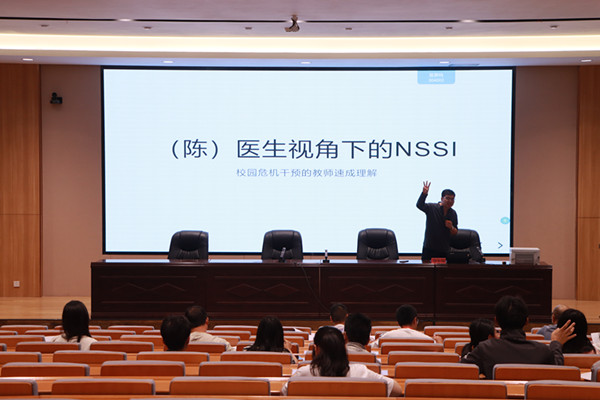 講座中,陳禮賢以“非自殺性自傷行為(NSSI)”為切入點(diǎn),從神經(jīng)醫(yī)學(xué)與精神衛(wèi)生的專業(yè)角度,系統(tǒng)剖析了學(xué)生心理危機(jī)的形成機(jī)制與干預(yù)路徑。通過(guò)生動(dòng)的情境模擬,還原了校園中可能出現(xiàn)的心理危機(jī)事件,并借助“神經(jīng)系統(tǒng)反應(yīng)模型”闡釋了自傷行為背后的生理與心理動(dòng)因。他指出,自傷并非單純的行為問(wèn)題,而往往與情緒調(diào)節(jié)障礙、人際關(guān)系壓力、神經(jīng)遞質(zhì)分泌異常等深層因素密切相關(guān)。陳禮賢強(qiáng)調(diào),校園心理危機(jī)干預(yù)是一個(gè)系統(tǒng)性工程,需要班主任、德育處、心理教師、保安科等多方協(xié)同,結(jié)合校規(guī)校紀(jì)與學(xué)生實(shí)際情況,形成“早發(fā)現(xiàn)、快反應(yīng)、科學(xué)干預(yù)”的工作機(jī)制。此外,他還提醒教師,要重視學(xué)生行為背后的生理與情緒信號(hào),避免簡(jiǎn)單歸因或道德評(píng)判,同時(shí)也要關(guān)注自身情緒與認(rèn)知局限,通過(guò)“專業(yè)抱團(tuán)”提升整體應(yīng)對(duì)能力。