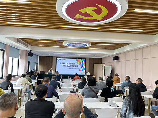 考察中,顧淑娟以 “跑出社區(qū)教育加速度,書寫成人教育新篇章” 為題作專題報告,系統(tǒng)介紹柯橋成校的辦學理念、特色路徑與成果。她重點分享了“文化養(yǎng)老進社區(qū)”“柯橋領(lǐng)讀者”兩大全國終身學習品牌,并詳解學校如何以“創(chuàng)新 + 品牌”為抓手,開展成人學歷、技能提升、老年教育、青少年素養(yǎng)培育、共富夜校等多元化培訓,精準覆蓋不同年齡層學習需求,助力社區(qū)教育高質(zhì)量發(fā)展。