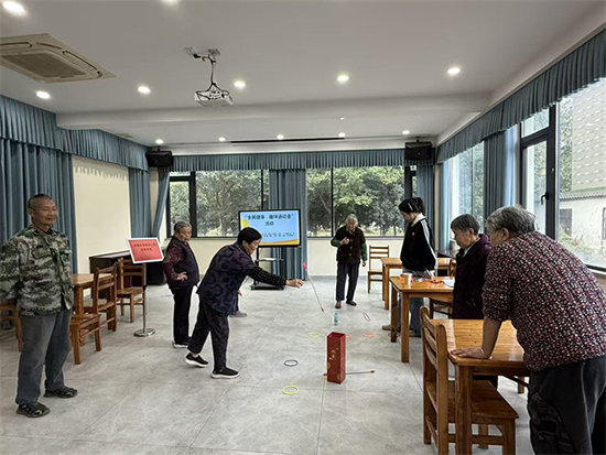活動籌備階段,學校的工作人員與趙家上村的志愿者們充分考慮老年學員的身體特點,精心設計了多個安全系數(shù)高、趣味性強且易于參與的項目,既有考驗協(xié)調性的“套圈奪寶”,也有比拼默契的“雙人夾球走”,還有適合休閑娛樂的“投壺闖關”等。每個項目的規(guī)則簡單易懂,工作人員還在現(xiàn)場耐心講解示范,確保每位學員都能快速上手。