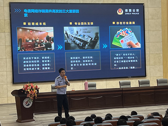 10月17日下午,諸暨市楓橋鎮(zhèn)初級(jí)中學(xué)報(bào)告廳內(nèi)座無(wú)虛席,一場(chǎng)專為七年級(jí)全體學(xué)生打造的健康大講堂如期開課。本次活動(dòng)特邀楓橋派出所魏越鋒警官主講,以《邁好青春的每一步》為題,圍繞“預(yù)防校園欺凌”“預(yù)防電信詐騙”“識(shí)毒禁毒”三大核心主題,為學(xué)子們送上一堂生動(dòng)且深刻的安全必修課。