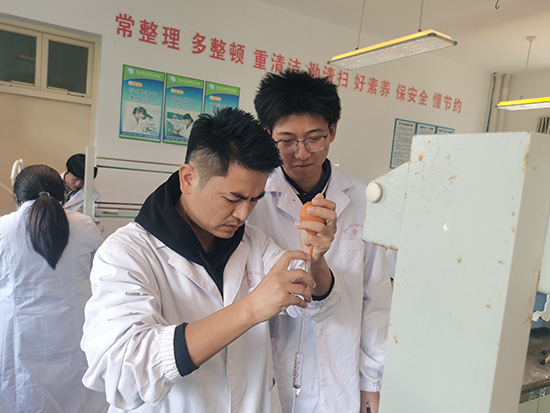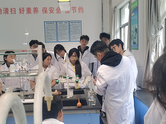 一行人首先走進(jìn)高三分析化學(xué)實(shí)驗(yàn)課堂。課堂上,金曉董老師講解深入淺出,示范規(guī)范認(rèn)真;學(xué)生們仔細(xì)觀察、熟記于心,嚴(yán)格遵守實(shí)驗(yàn)要求,按流程規(guī)范操作。整個(gè)課堂井然有序,師生互動(dòng)良好,充分體現(xiàn)了“做中學(xué)、學(xué)中做”的教學(xué)理念。