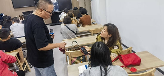 練習(xí)“添加轉(zhuǎn)場(chǎng)和配樂”時(shí),年輕人們湊在一起討論——“這個(gè)‘閃白’轉(zhuǎn)場(chǎng)適合拍工作場(chǎng)景”“這首輕音樂配vlog肯定很治愈”,偶爾還會(huì)為“哪個(gè)字幕字體更清晰”爭(zhēng)得熱鬧;
