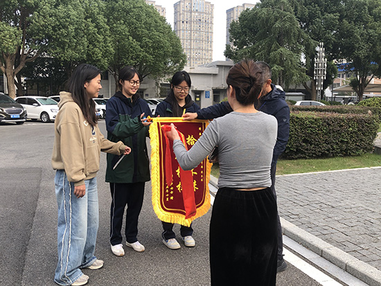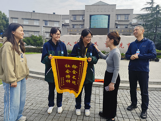 這份感動并未止步于電話。10月27日,失主女士專程來到海寧衛(wèi)生學校,將一面書寫著“拾金不昧 品德高尚”的錦旗送到了兩位同學手中,當面向她們表達了誠摯的謝意。她說:“從這兩個孩子身上,我看到了海寧衛(wèi)校學生優(yōu)秀的品質和良好的教養(yǎng),你們學校的育人成果,值得肯定!”