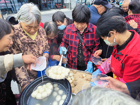 趣味互動(dòng)專區(qū)設(shè)置兩大特色活動(dòng):一是“福氣滾滾來”投乒乓球游戲:游戲操作簡單、趣味性強(qiáng),適配各年齡段長者,既能活躍現(xiàn)場氣氛,又能鍛煉手眼協(xié)調(diào)能力。 二是“團(tuán)圓甜蜜蜜”驢打滾現(xiàn)場制作分享:邀請村內(nèi)廚藝志愿者與工作人員協(xié)作,現(xiàn)場準(zhǔn)備湯圓粉、黃豆粉、芝麻粉等食材,手工制作驢打滾。以“團(tuán)圓團(tuán)子”寓意鄰里和睦,通過美食分享傳遞“家”的溫暖,弘揚(yáng)傳統(tǒng)文化。
