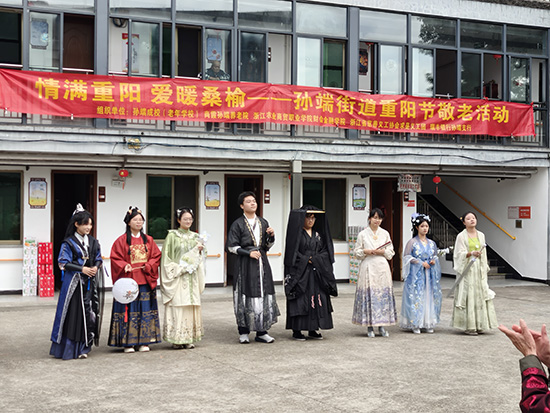 最后,浙江農商院財會金融學院學生也為老人們獻上了漢服走秀和歌曲演唱等節(jié)目,他們充滿朝氣、充滿活力的表演如同一陣陣清風,吹進了老人們的心田,吹開了一張張笑臉。