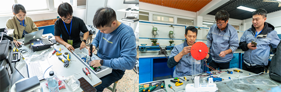 作為職業(yè)教育創(chuàng)新創(chuàng)業(yè)生態(tài)的核心支撐,中職教師的創(chuàng)新實(shí)踐能力、成果轉(zhuǎn)化能力直接決定著學(xué)生創(chuàng)新素養(yǎng)的培育質(zhì)量。此次賽事精準(zhǔn)聚焦師資能力短板,以 “實(shí)戰(zhàn)化” 競賽設(shè)計(jì)構(gòu)建起師資能力提升的 “閉環(huán)體系”。在3小時(shí)的文本制作環(huán)節(jié),教師需完成創(chuàng)新作品文稿撰寫與 PPT 制作,考驗(yàn)的不僅是文字表達(dá)能力,更是對創(chuàng)新理念的梳理、技術(shù)方案的論證能力 —— 這正是日常教學(xué)中引導(dǎo)學(xué)生開展項(xiàng)目式學(xué)習(xí)、撰寫創(chuàng)新方案的 “前置訓(xùn)練”;8小時(shí)的現(xiàn)場制作環(huán)節(jié),教師需利用通用工具、基礎(chǔ)材料及自備核心元件完成實(shí)物或模型創(chuàng)作,從圖紙?jiān)O(shè)計(jì)到動手組裝,從問題調(diào)試到功能優(yōu)化,全程模擬真實(shí)創(chuàng)新項(xiàng)目開發(fā)流程,有效彌補(bǔ)了部分教師 “重理論講授、輕實(shí)踐操作” 的能力短板;而6分鐘展示與4分鐘答辯環(huán)節(jié),則要求教師精準(zhǔn)提煉作品創(chuàng)新點(diǎn)、清晰闡述技術(shù)路徑,同時(shí)快速回應(yīng)評委關(guān)于可行性、實(shí)用性的提問,這一過程顯著提升了教師的創(chuàng)新成果表達(dá)能力與臨場應(yīng)變能力,為后續(xù)指導(dǎo)學(xué)生參與各類創(chuàng)新競賽積累了全流程的寶貴經(jīng)驗(yàn)。