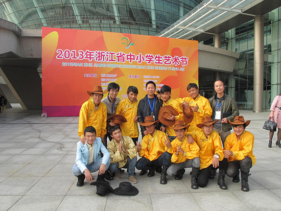 2013年開始,楊劍老師充分發(fā)揮西藏學(xué)生的歌舞天賦組建了民族歌舞隊,并進(jìn)行第一次藏族舞蹈《雪域情》的創(chuàng)作。2014年,該舞蹈獲得鄞州區(qū)中小學(xué)藝術(shù)節(jié)舞蹈比賽一等獎、寧波市中小學(xué)藝術(shù)節(jié)舞蹈比賽一等獎,浙江省中小學(xué)藝術(shù)節(jié)舞蹈比賽三等獎。