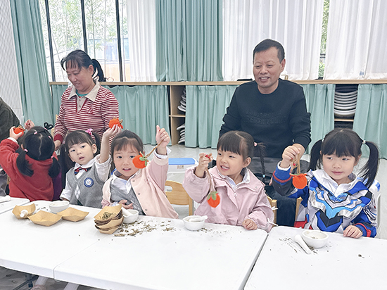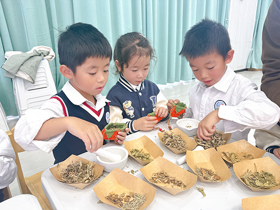 活動在一節(jié)內(nèi)容扎實(shí)、貼近生活的“秋季養(yǎng)生小課堂”中拉開序幕,長輩們認(rèn)真的聆聽志愿者講師的專業(yè)講解,頻頻點(diǎn)頭給與回應(yīng),現(xiàn)場氛圍一下子活躍起來。隨后,活動進(jìn)入了充滿童趣與暖意的親子互動環(huán)節(jié)——手工制作“柿柿如意”艾草香囊。20余組家庭的孩子和長輩們在志愿者的耐心指導(dǎo)下,興致勃勃地動手制作。孩子們爭相拿起研磨工具,小心翼翼地?fù)v磨細(xì)料,爺爺奶奶、外公外婆們也一起加入進(jìn)來,親子齊動手,所見之處盡是溫馨的畫面。最后,充滿藥香的艾草、薄荷粉被仔細(xì)裝袋、收口,每一個步驟都凝聚著孩子們專注的愛。孩子們拿著親手制成的、寓意著美好祝愿的“柿柿如意”香囊,向爺爺奶奶、外公外婆送上最純真、最誠摯的節(jié)日祝福。