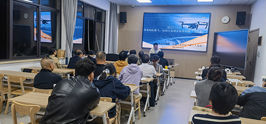 本期培訓采用“理論學習+模擬實訓+戶外實操”三階遞進模式,課程體系科學完善,涵蓋了無人機發(fā)展史、飛行原理、安全法規(guī)等理論基礎(chǔ),以及無人機設(shè)備組裝、調(diào)試、基本飛行動作、航線規(guī)劃等,注重理論與實踐緊密結(jié)合。第一節(jié)課,專業(yè)講師系統(tǒng)性地講解了國家及地方關(guān)于民用無人機飛行的相關(guān)法律法規(guī)、空域申請流程以及飛行禁忌。他強調(diào),“無人機不是玩具,每一次起飛都意味著責任”,讓學員們從第一天起就樹立牢固的安全飛行意識。講師向?qū)W員們展示了一架實體多旋翼無人機用于講解基本結(jié)構(gòu),“這是機臂、電機還有螺旋槳、電調(diào)以及云臺……”講師最后演示了最基礎(chǔ)的的起飛與懸停,在座的學員無不被無人機技術(shù)深深吸引。