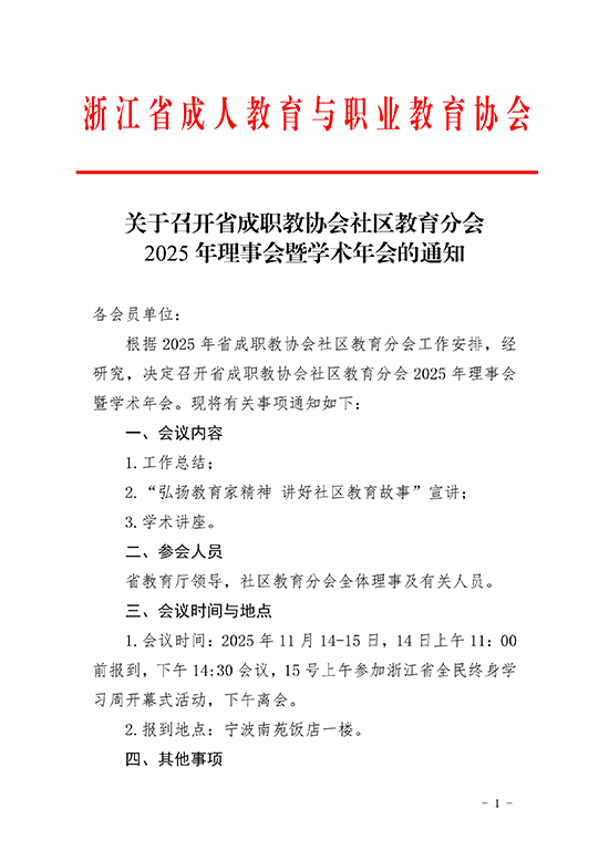 關于召開省成職教協(xié)會社區(qū)教育分會2025年理事會暨學術年會的通知