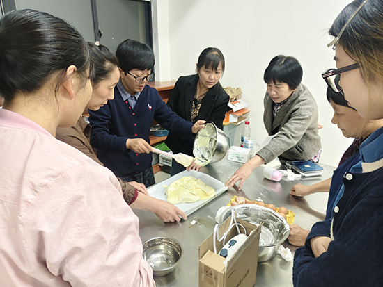 此次培訓(xùn)是夏履成校“浙履講堂”的延伸實(shí)踐,聚焦村民“學(xué)技能、促增收”需求,邀請專業(yè)烘焙師授課。課堂上,老師從食材選購、面團(tuán)揉制、發(fā)酵溫度控制到造型設(shè)計(jì)、烘烤技巧,進(jìn)行手把手教學(xué)。從基礎(chǔ)的吐司、餐包到顏值與口感兼具的牛角包、蔓越莓軟歐包,學(xué)員們認(rèn)真記錄配方要點(diǎn),在老師指導(dǎo)下反復(fù)練習(xí),禮堂內(nèi)不時(shí)響起請教聲與歡笑聲。