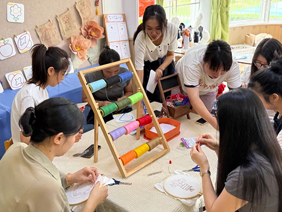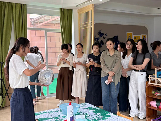 最美的教育是家園共育的互動(dòng)。家委們“零距離”觀摩閃亮日活動(dòng),親身參與染繡編場(chǎng)館體驗(yàn)。他們靜下心來(lái)沉浸于手工制作中,感受其中的樂(lè)趣與不易,深刻體會(huì)到“教育最美的回響,是守護(hù)每個(gè)孩子與生俱來(lái)的獨(dú)特光芒”。