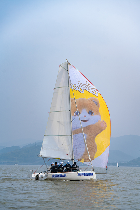 東旅揚(yáng)帆一隊(duì)的吳齊澤已是第二次參加該項(xiàng)賽事。相比去年未能進(jìn)入前三,今年成功摘得季軍,實(shí)現(xiàn)了突破。“雖然有點(diǎn)遺憾沒(méi)拿冠軍,但能站上領(lǐng)獎(jiǎng)臺(tái),是對(duì)我們努力的最好回報(bào)。”作為舵手,他深知風(fēng)向判斷和繞標(biāo)技術(shù)是比賽的關(guān)鍵。比賽中,他們?cè)蚍馔鈷炀W(wǎng),耽誤了寶貴時(shí)間,影響了單輪成績(jī)。但吳齊澤迅速調(diào)整心態(tài),帶領(lǐng)團(tuán)隊(duì)穩(wěn)住節(jié)奏,最終仍以優(yōu)異表現(xiàn)挺進(jìn)前三。